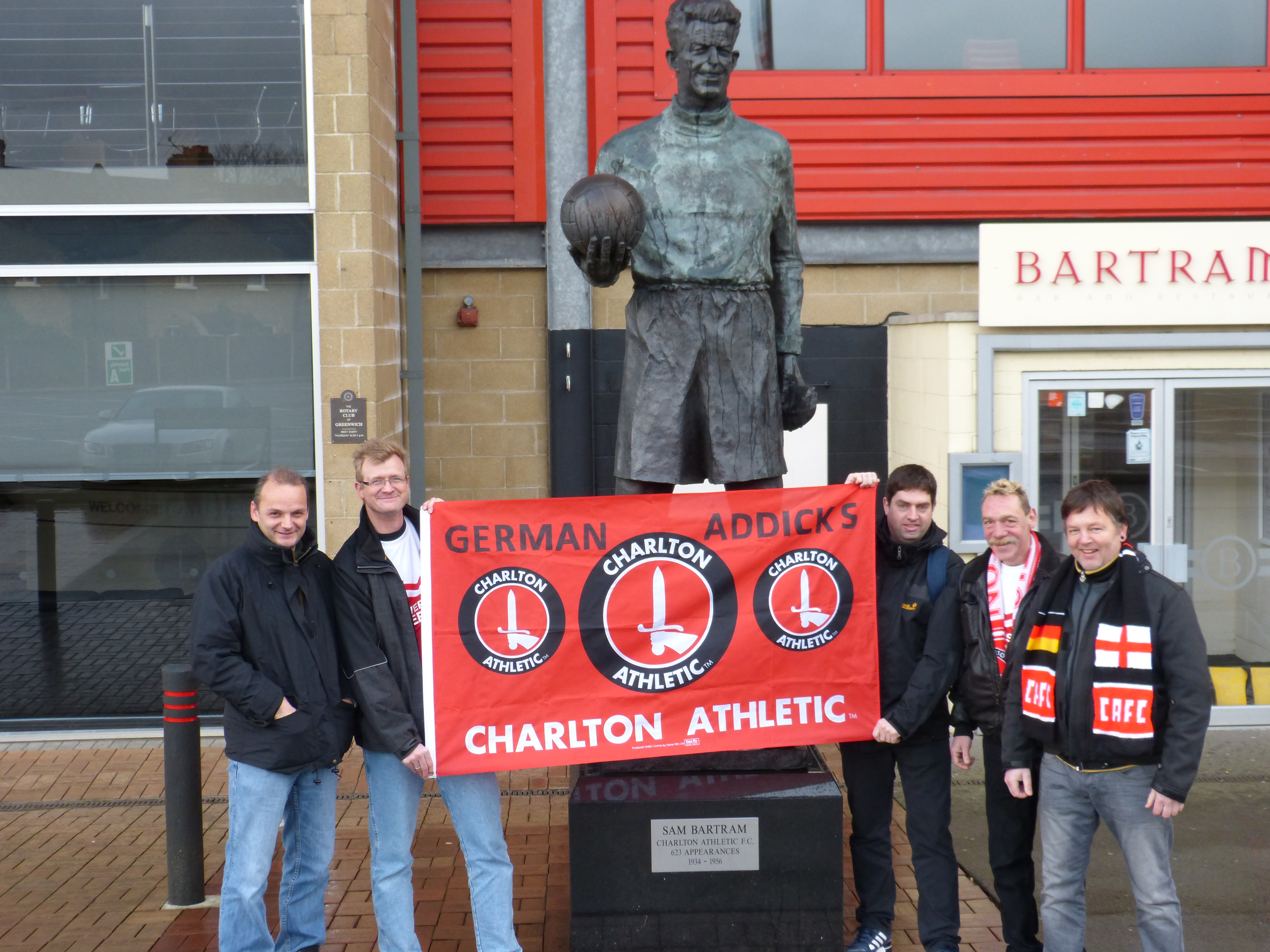 Vor der Abreise in Deutschland hatte ich eine Charltonfahne mit einem Edding um den Schriftzug „German Addicks“ versehen. Der Begriff für unsere Gruppe geisterte schon länger herum und wurde nun manifestiert.