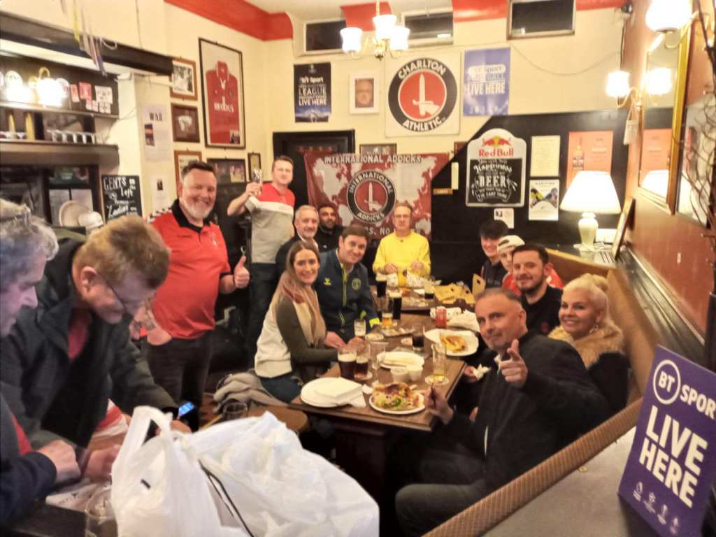 Als erster inoffizieller Teil stand ein Treffen im Rose of Denmark in Charlton auf dem Programm. Da wir uns bisher hauptsächlich nur aus Zoom Meetings kannten war einige Spannung mit dabei sich erstmalig in Natura zu treffen. Wie unser Mitgleid Alan immer zu sagen pflegt, „wenn sich zwei Addicks das erste Mal treffen ist es niemals so, als wenn zwei Fremde sich treffen“. Es herrschte gleich von Anfang an eine lockere Atmosphäre. Schnell fanden sich interessante Gespächsthemen und jeder berichtete von vegangene Besuchen von Charltonspielen. Zum Abendessen wurden türkische Spezialitäten aus den nahen EaTurkish bestellt.
